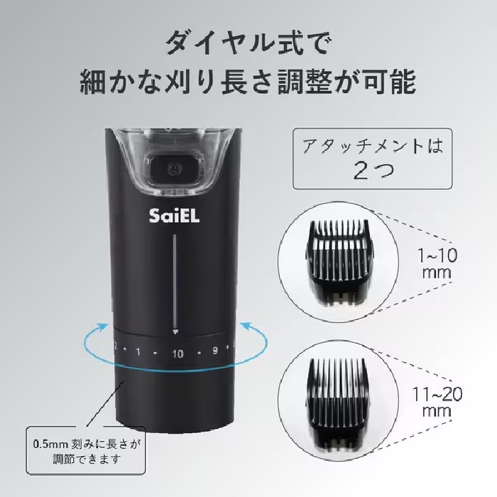 2種類のアタッチメント付属で1-20mmの長さに対応