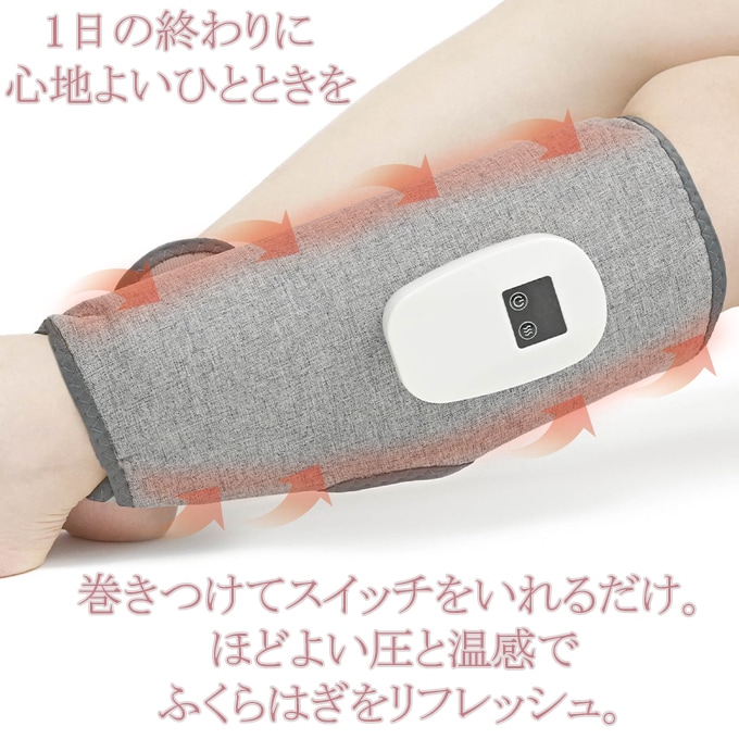一日の終わりに心地よいひとときを。6段階の強さ、2段階の温度調整で、ほどよい圧と温感でふくらはぎをリフレッシュ♪