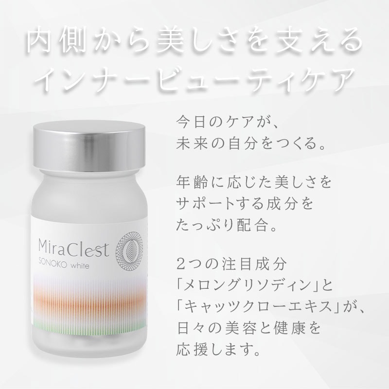 【賞味期限間近】【62粒入×4箱】SONOKO Mira Clest 毎日の美容と健康をサポート | 今日のケアが、未来の自分をつくる。メロングリソディン×キャッツクローの美容習慣。