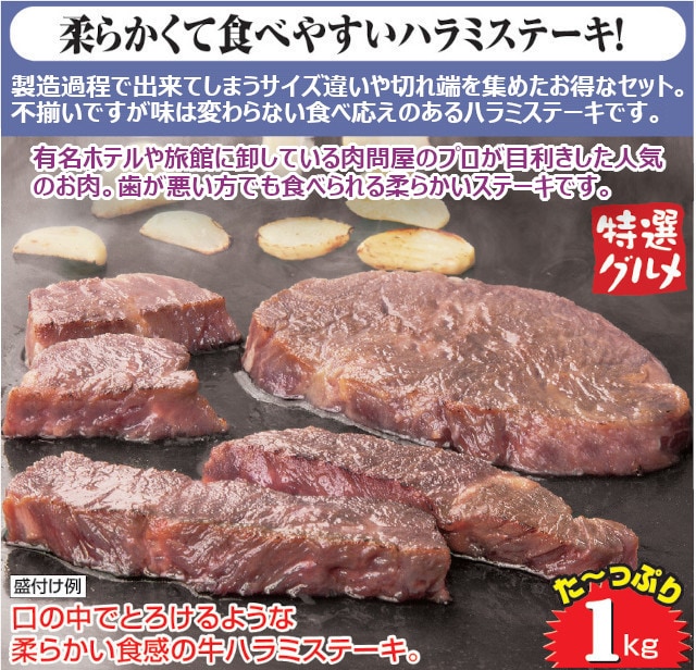 【計1kg/500g×2パック】牛ハラミステーキ | 柔らかくて食べやすいハラミステーキ!