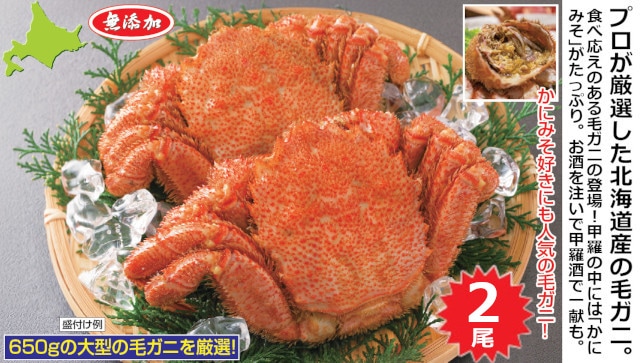 【計約1.3kg/2尾】北海道産 大型ボイル毛ガニ | プロが厳選した北海道産の毛ガニ。