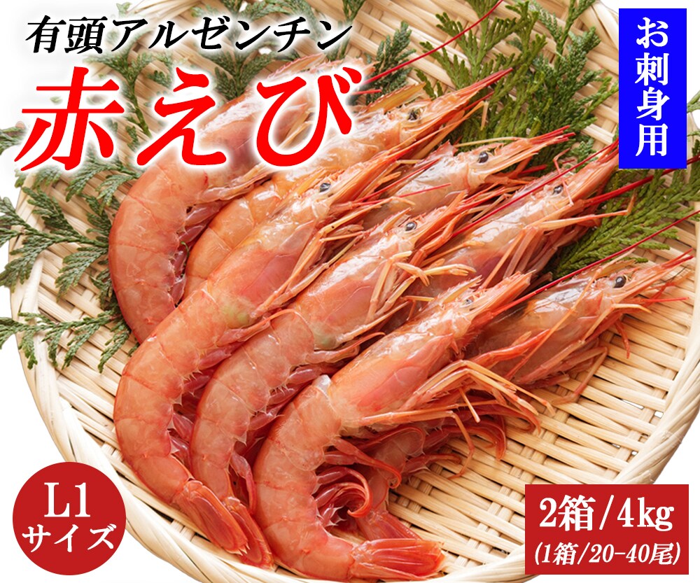 - 【計4kg/1箱(20-40尾×2)】有頭アルゼンチン赤えび L1サイズ お刺身用
