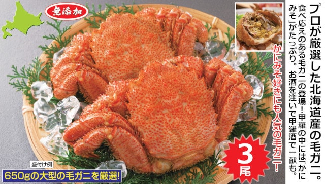 【計約1.9kg/3尾】北海道産 大型ボイル毛ガニ | プロが厳選した北海道産の毛ガニ。