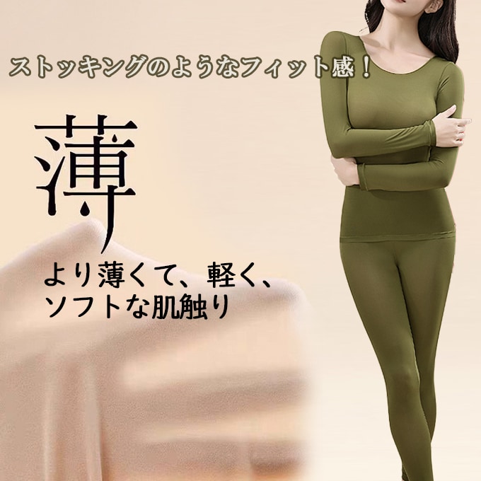 【グリーン/Lサイズ相当】極薄エアーフィットインナーセット | まるで素肌のような着心地。軽くてよく伸びる、新感覚あったかインナー。