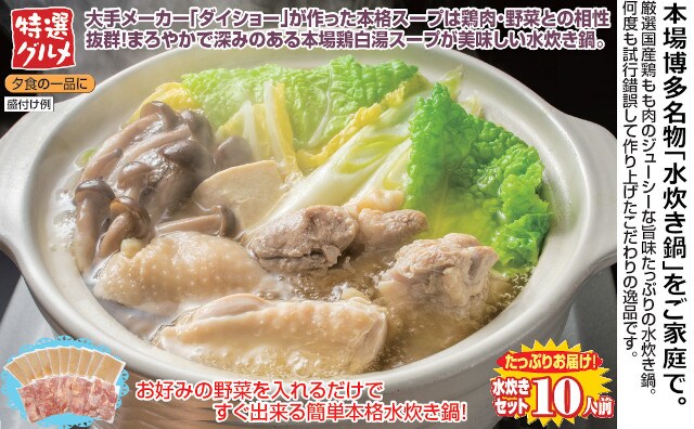 【10人前】〈博多名物〉国産鶏肉水炊きセット | 本場博多名物「水炊き鍋」をご家庭で。