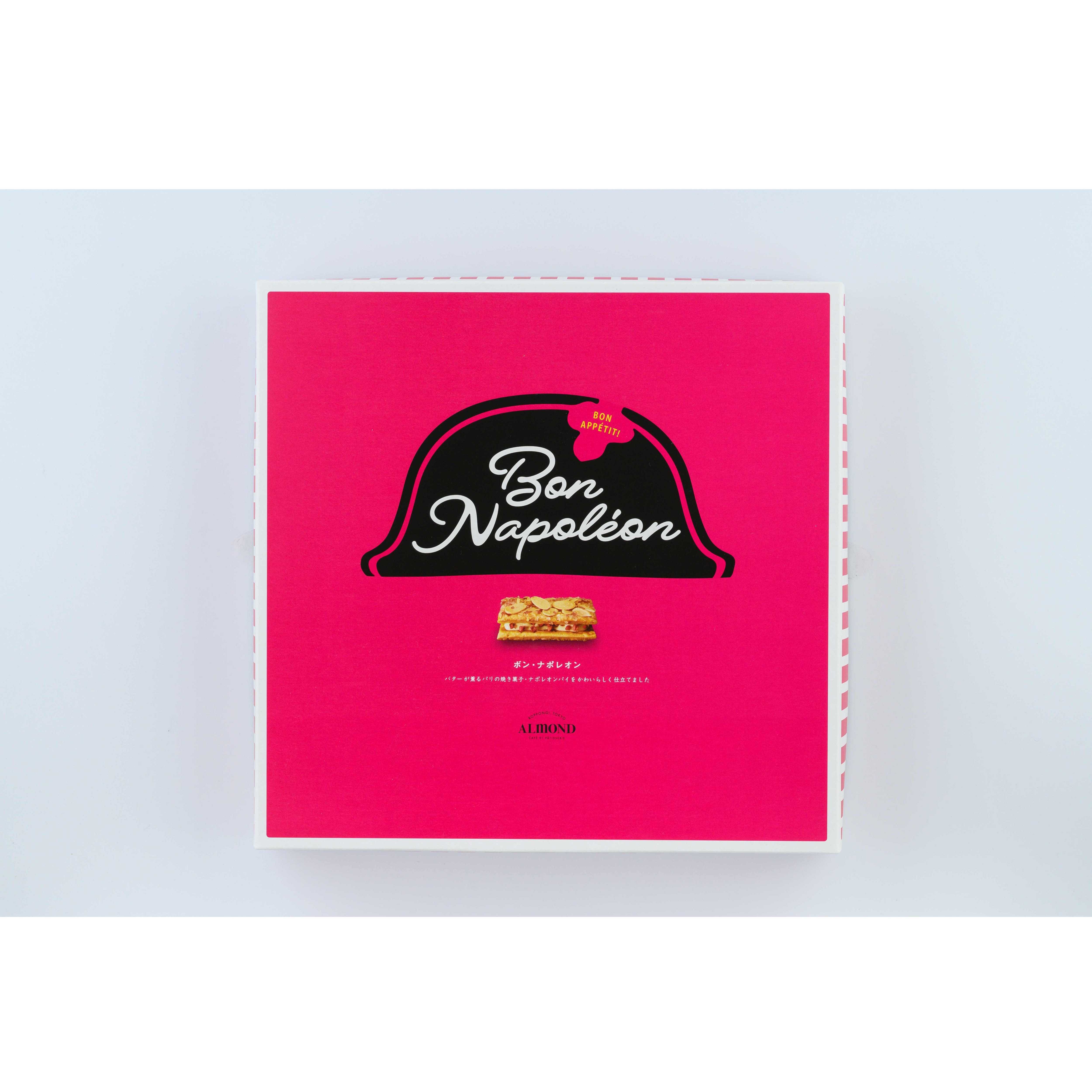 パッケージには、ナポレオンパイの名前の由来とされる”ナポレオンハット”とアマンドピンクを基調に、「かわいらしい皇帝(ボン・ナポレオン)」としてデザインしました。