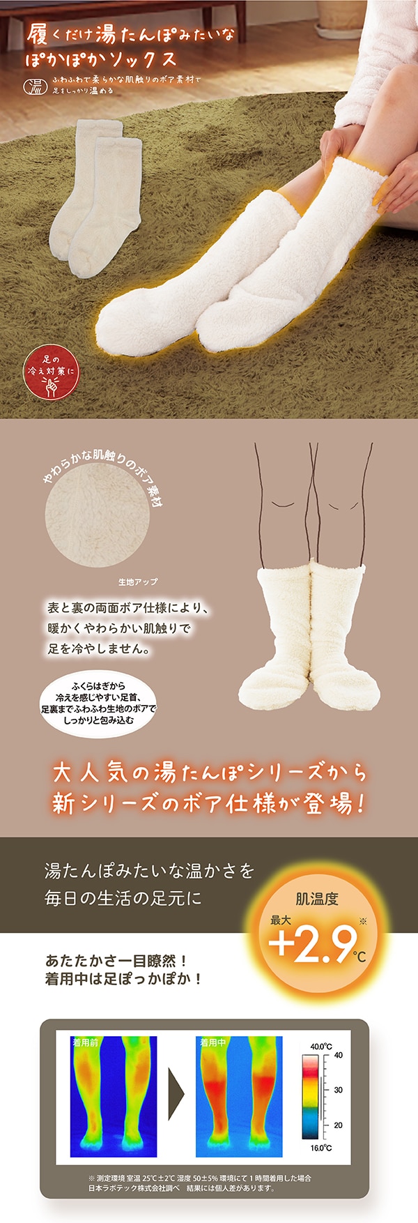 【アイボリー】湯たんぽみたいなあったかボアソックス | 履くだけ湯たんぽのようなぽかぽかボアソックス