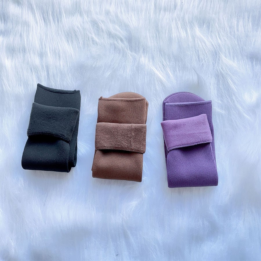 - 【3足セット】裏起毛ソックス 靴下 冷え取り靴下(A:ブラック/パープル/ブラウン)