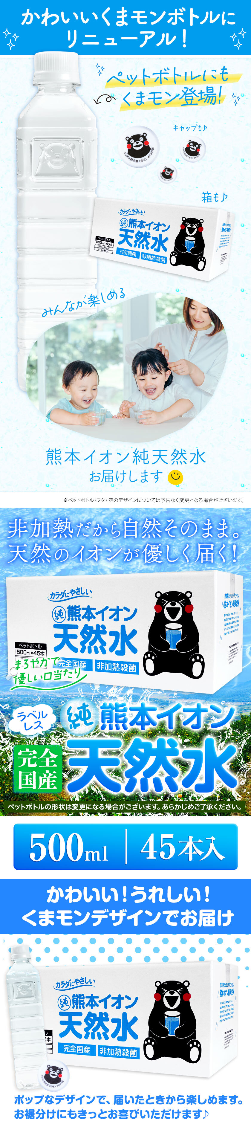 - 【500ml×45本】大容量 熊本イオン純天然水 ラベルレス
