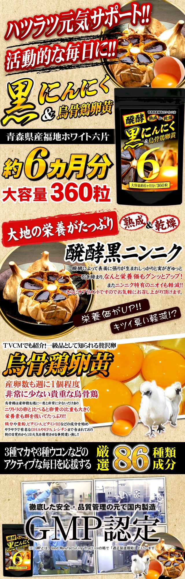 ・醗酵黒にんにく卵黄BIG6(約6ヵ月分/360粒)