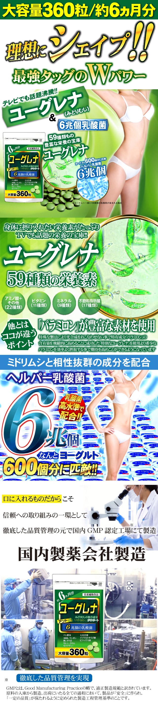 - ユーグレナと6兆個の乳酸菌(約6ヵ月分/360粒)