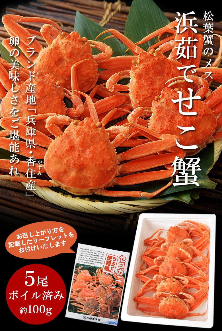 - 【5尾/計約500g】松葉蟹のブランド産地兵庫県・香住産限定!浜茹でせこ蟹