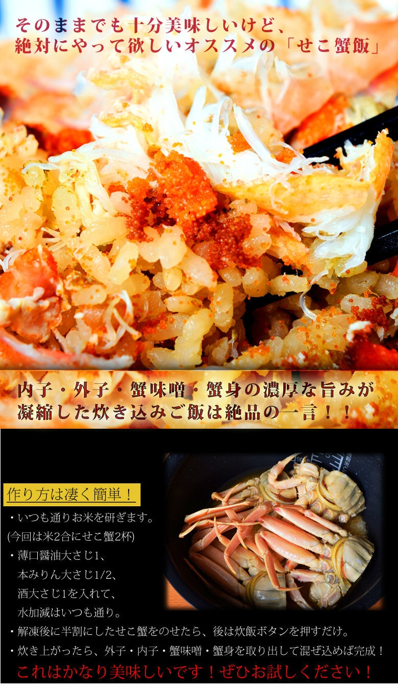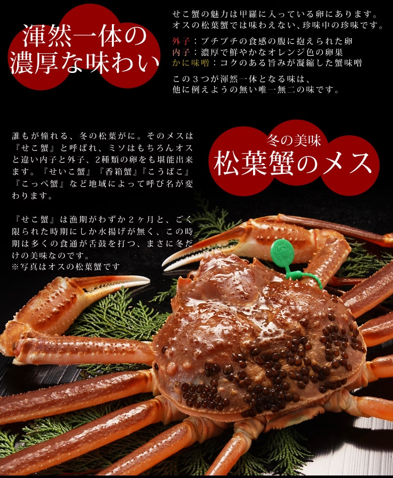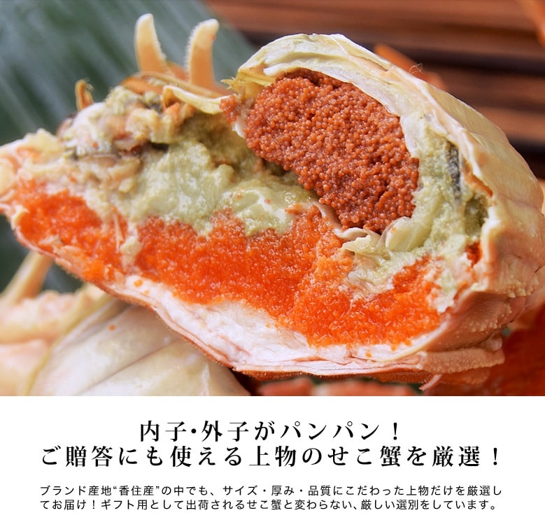【5尾/計約500g】松葉蟹のブランド産地兵庫県・香住産限定!浜茹でせこ蟹 | かに味噌、内子と外子がパンパンに詰まったせこ蟹!