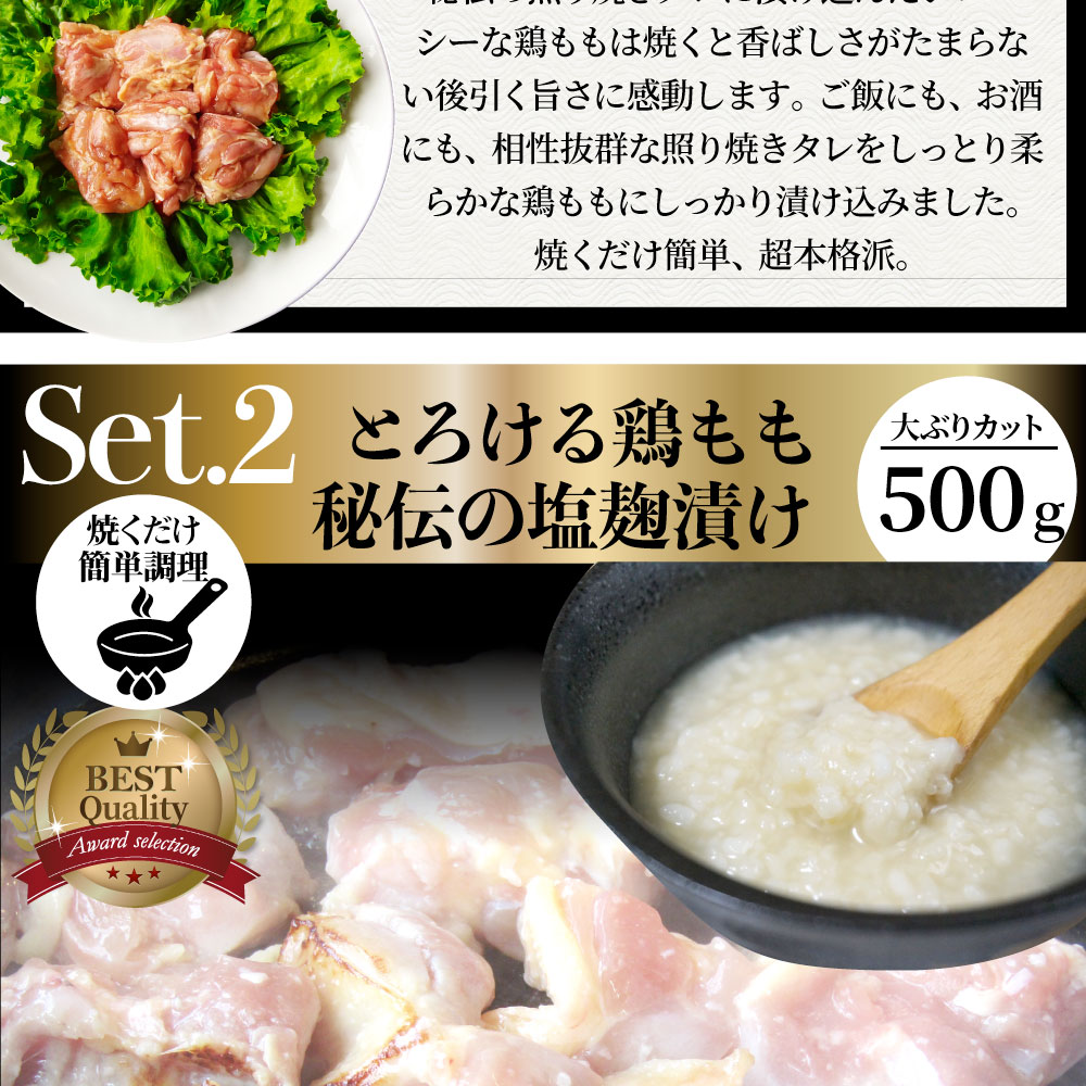 - 【1.5kg(500g×3)】ジューシー鶏もも焼肉 3種 食べ比べ福袋/焼くだけ簡単!