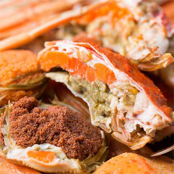 【セコガニ】は別名「セイコガニ」「親がに」「こうばこがに」とも呼ばれる松葉ガニのメス。外子・内子と呼ばれる卵の美味しさは有名ですが、絶品のダシが出るのも特長です。資源保護のため、漁獲時期は11月中旬から12月までの期間しかか味わえない非常に貴重な蟹です。