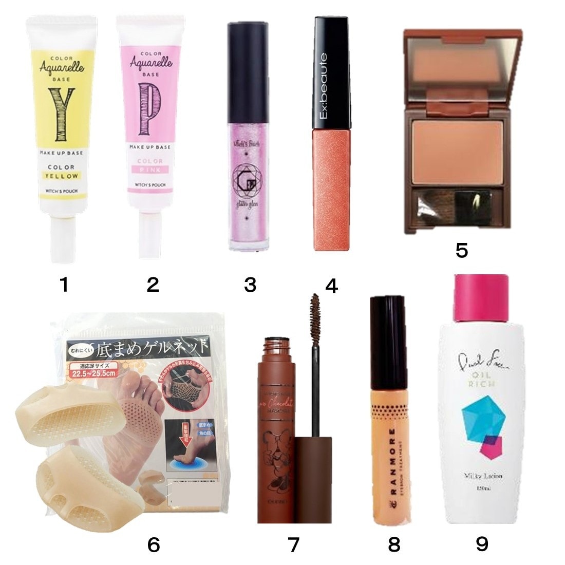 1.ウィッチズポーチコントロールカラーベース(イエロー):水、シクロペンタシロキサン、BG、合成フルオロフロゴパイト、グリセリン、メタクリル酸メチルクロスポリマー、ジメチコン、PEG-10ジメチコン、PEG-9ジメチコン、トリメチルシロキシケイ酸、ヒアルロン酸Na、水溶性コラーゲン、ペンチレングリコール、ジステアルジモニウムヘクトライト、ソルビトール、塩化Na、フェノキシエタノール、メチルパラベン、ハイドロゲンジメチコン、シリカ、(ビニルジメチコン/メチコンシルセスキオキサン)クロスポリマー、エチルパラベン、トコフェロール、(+/-)タルク、酸化チタン、酸化鉄、酸化クロム、水酸化Al、マイカ、赤226、酸化スズ