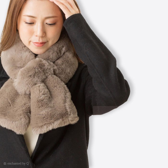 - 【エトゥープ】もこもこもふもふ フェイクファーボアマフラー