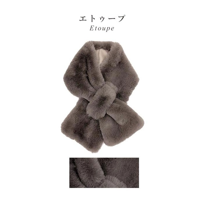 【エトゥープ】もこもこもふもふ フェイクファーボアマフラー | ふわふわ滑らかな、ボリュームティペット♪ 手触りふんわり滑らか