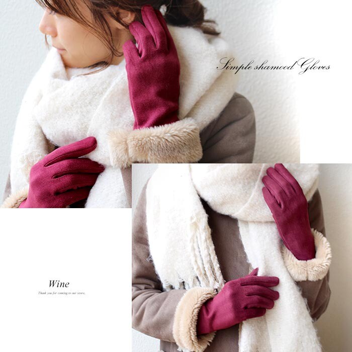 【ワイン】スマートフォン対応 手触りなめらか&裏起毛シャムード手袋 | スマホタッチ機能、シンプルで高品質 手が綺麗に見えるなめらか素材 カラバリも豊富