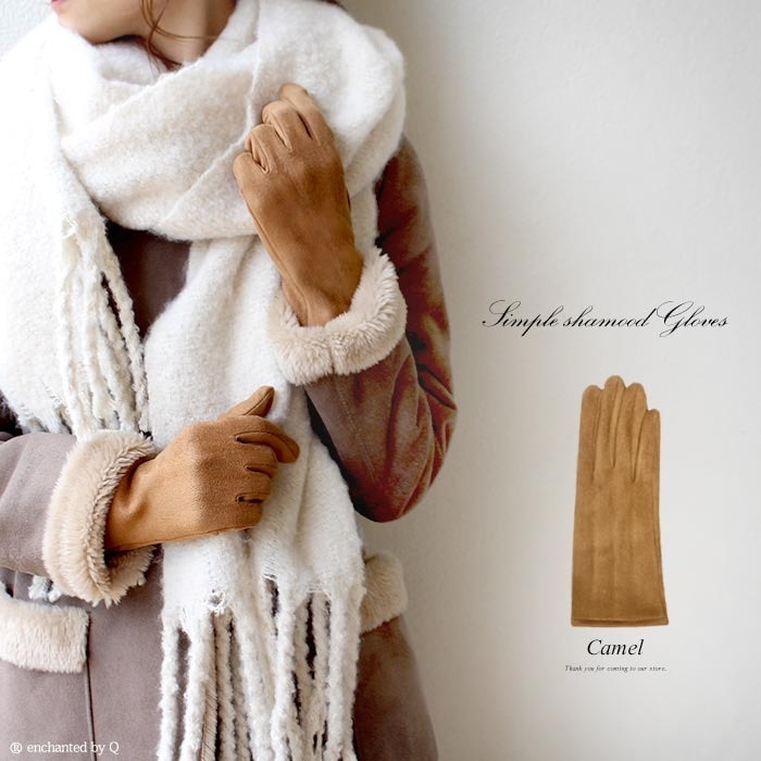 【キャメル】スマートフォン対応 手触りなめらか&裏起毛シャムード手袋 | スマホタッチ機能、シンプルで高品質 手が綺麗に見えるなめらか素材 カラバリも豊富