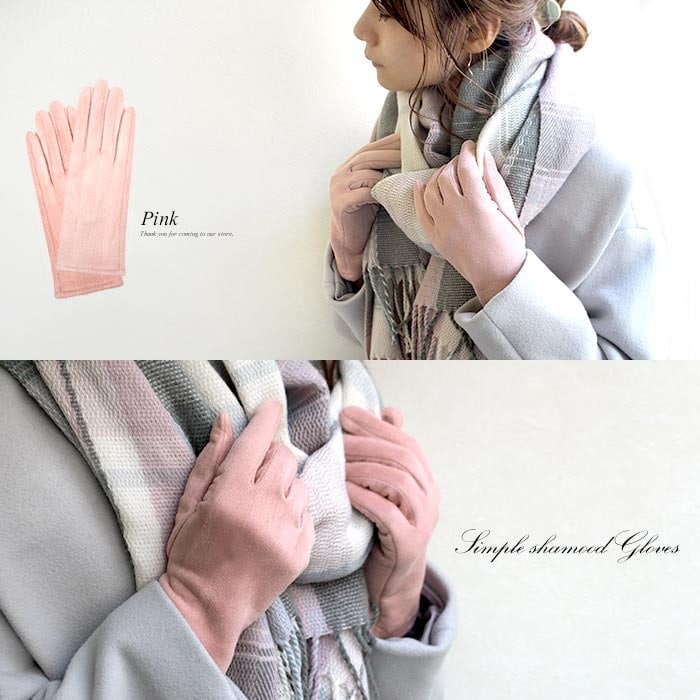 【ピンク】スマートフォン対応 手触りなめらか&裏起毛シャムード手袋 | スマホタッチ機能、シンプルで高品質 手が綺麗に見えるなめらか素材 カラバリも豊富