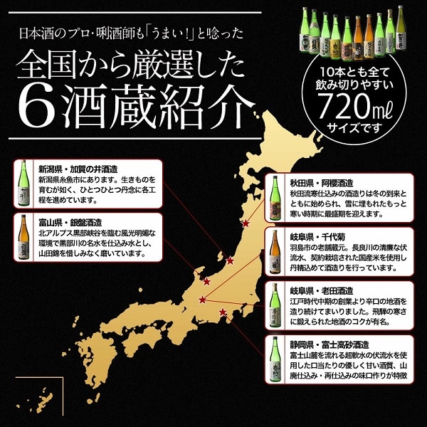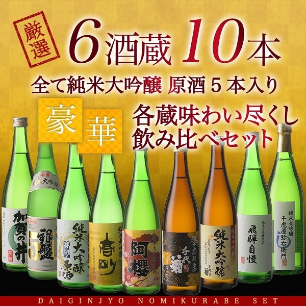 - 【720ml×10本】6蔵10本 全て純米大吟醸(原酒5本入り)[JS6]