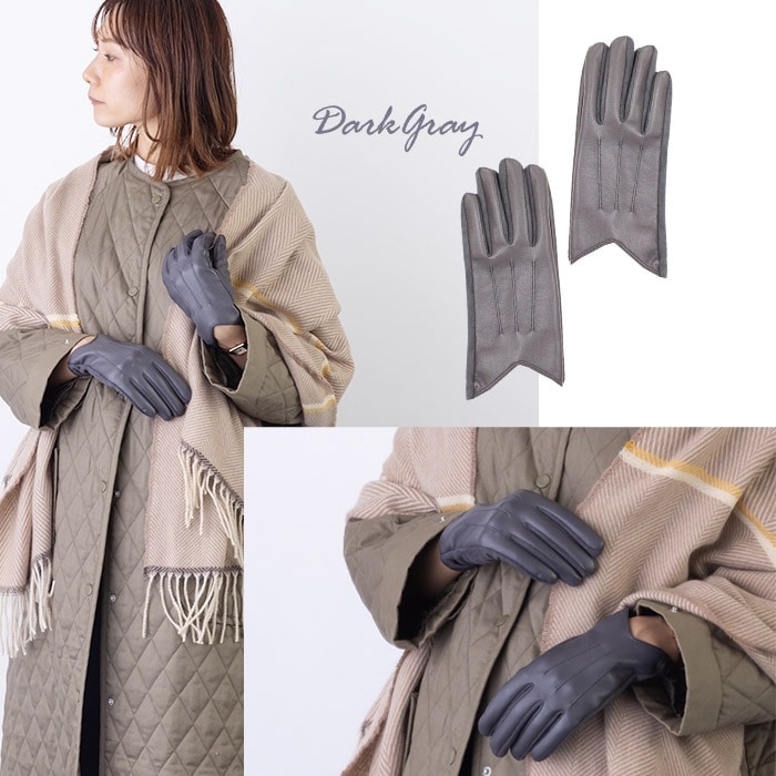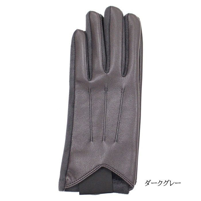 【ダークグレー】フェイクレザー あたたかくおしゃれな裏起毛手袋 | 手が綺麗に見えるフェイクレザー手袋 スタイリッシュなのに暖かさバツグン