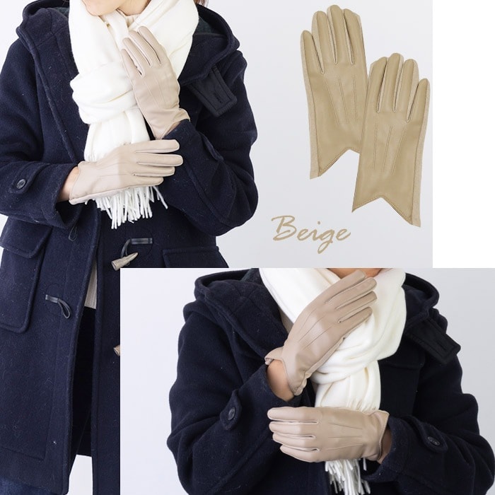 【ベージュ】フェイクレザー あたたかくおしゃれな裏起毛手袋 | 手が綺麗に見えるフェイクレザー手袋 スタイリッシュなのに暖かさバツグン