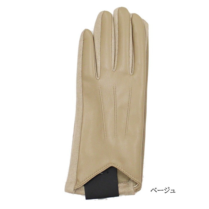 - 【ベージュ】フェイクレザー あたたかくおしゃれな裏起毛手袋