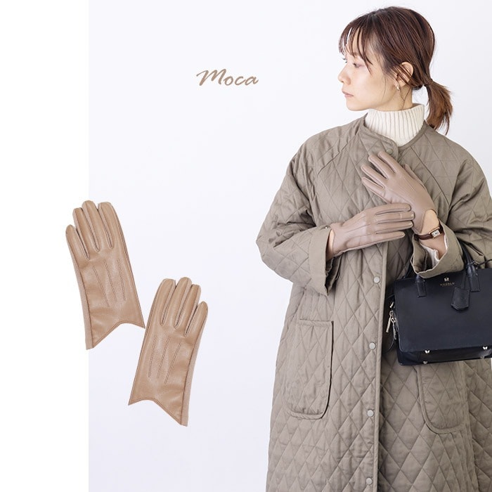 【モカ】フェイクレザー あたたかくおしゃれな裏起毛手袋 | 手が綺麗に見えるフェイクレザー手袋 スタイリッシュなのに暖かさバツグン