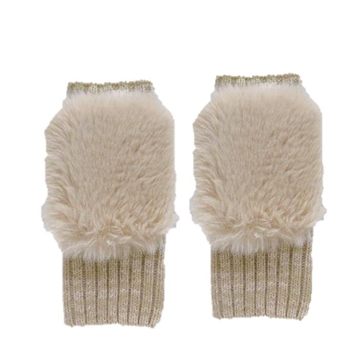 【ベージュ】もふもふフィンガーレスミトン | もこもこファーがかわいい フィンガーレス グローブ スマホ操作も簡単