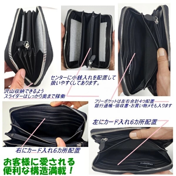 - 【ブラック】クロコダイル レザー ホーンバック ラウンドファスナー 長財布