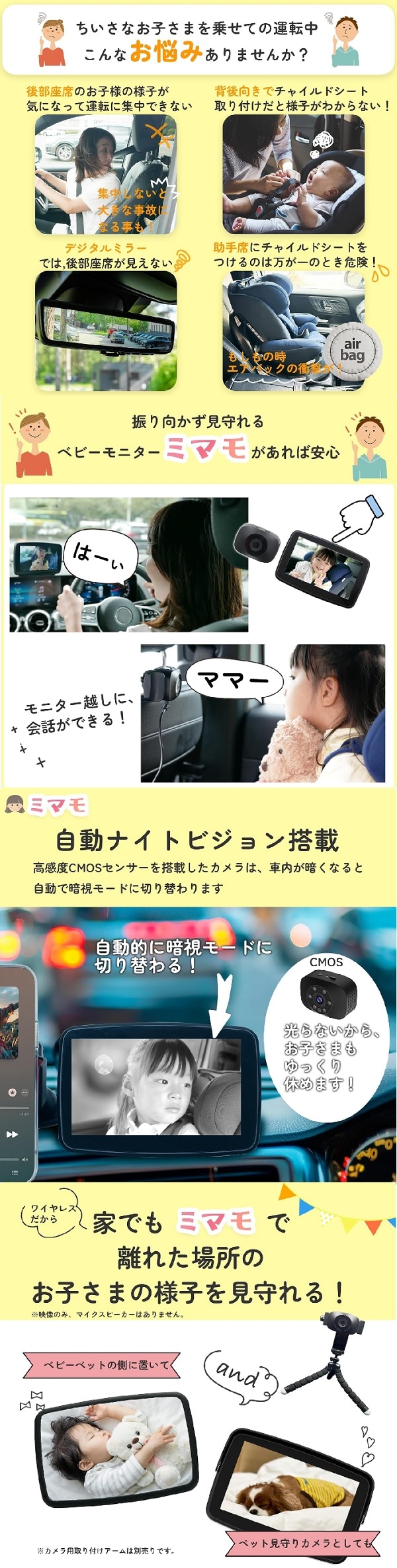 車載ベビーモニター『ミマモ』は業界初のワイヤレス接続を実現!