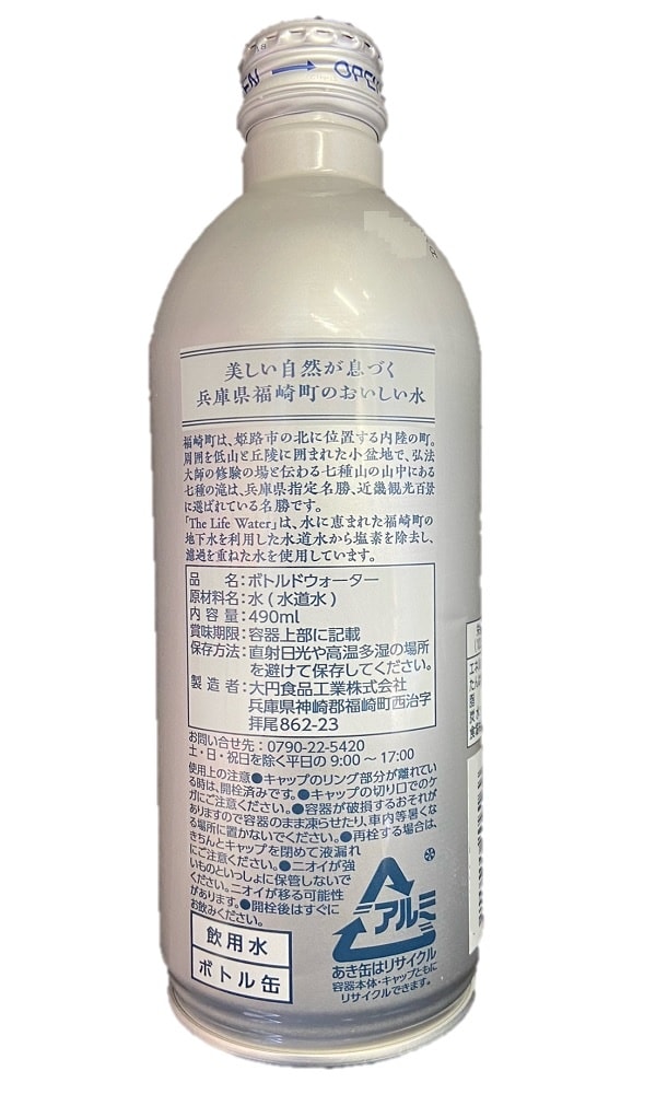 【490ml×24本】THE LIFE WATER(10年保存備蓄水)ビッグバーンフーズ軟水 保存水 | 災害備蓄用ボトル缶タイプの長期保存水 兵庫県福崎町のおいしい水。ペットボトルより軽い!