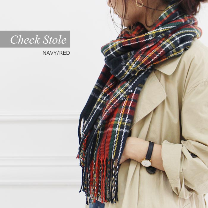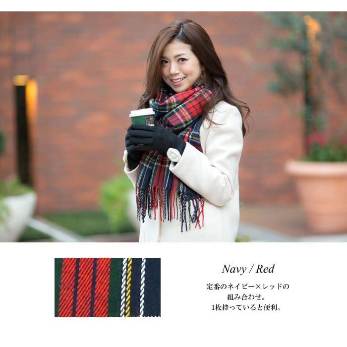 【ネイビーレッド/チェック】ストール 柔らかく巻きやすい 男女兼用 | 流行に流されず、いつまでも飽きがこないチェック柄