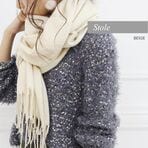 柔らかく肌ざわりのよい素材で、首元や肩にふんわりなじむストールです