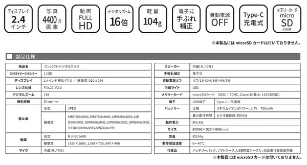 - コンパクトデジタルカメラ NT-DC001-WBK ホワイト×ブラック