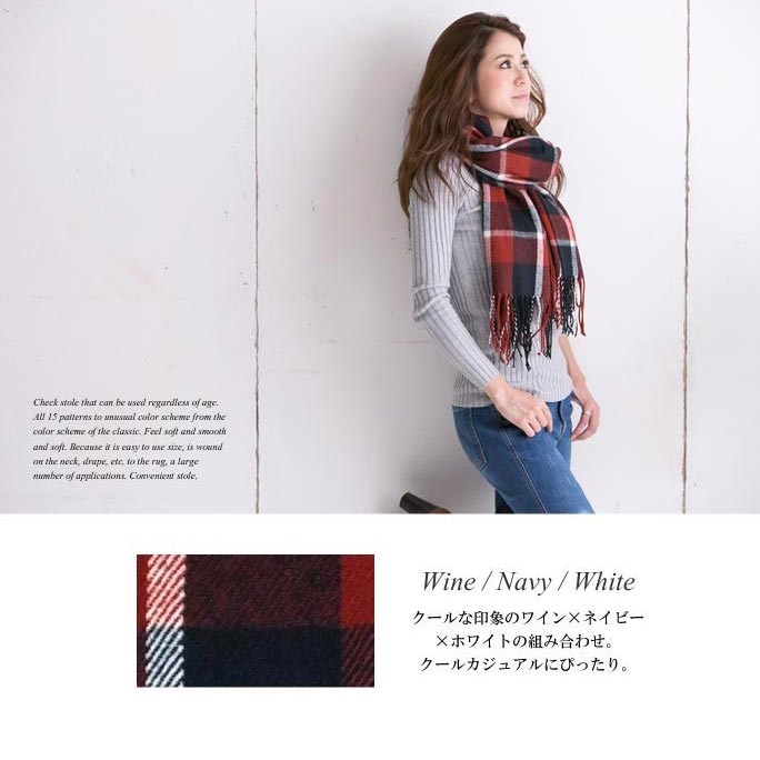 【ワインネイビーホワイト/チェック】ストール 柔らかく巻きやすい 男女兼用 | トラッドスタイルにマッチするチェック柄 冬のコーデの差し色に♪