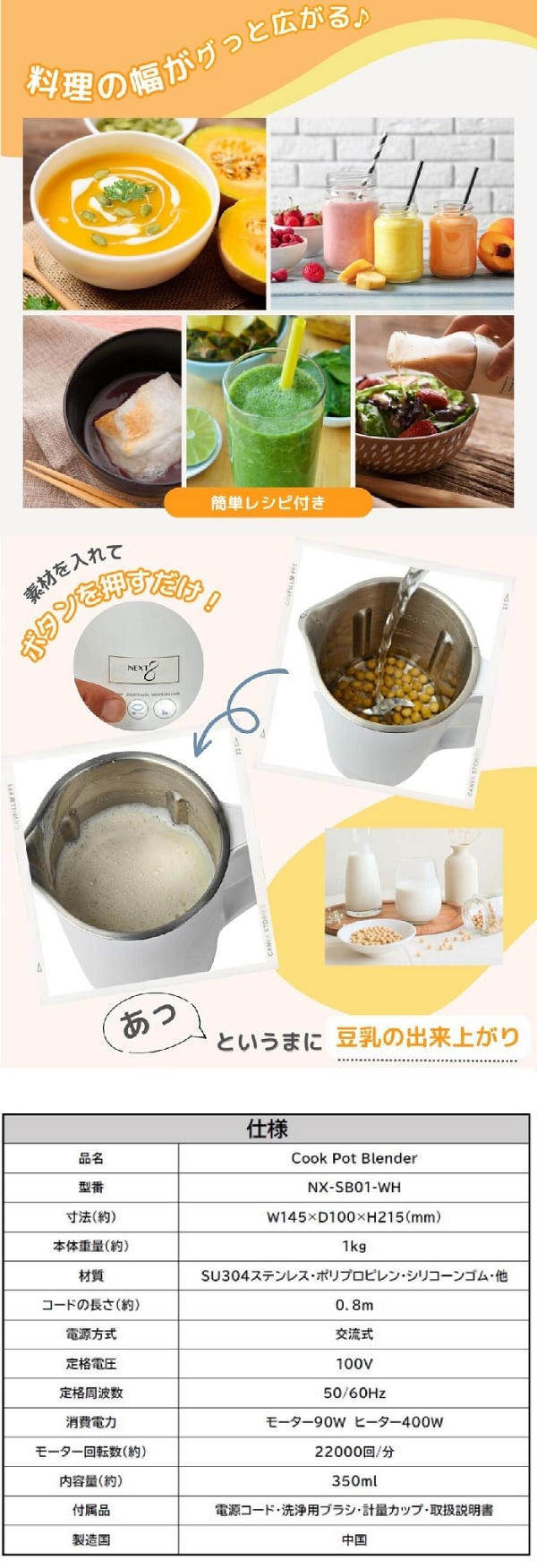 - クックポットブレンダー 1台3役 自動調理 NX-SB01-WH