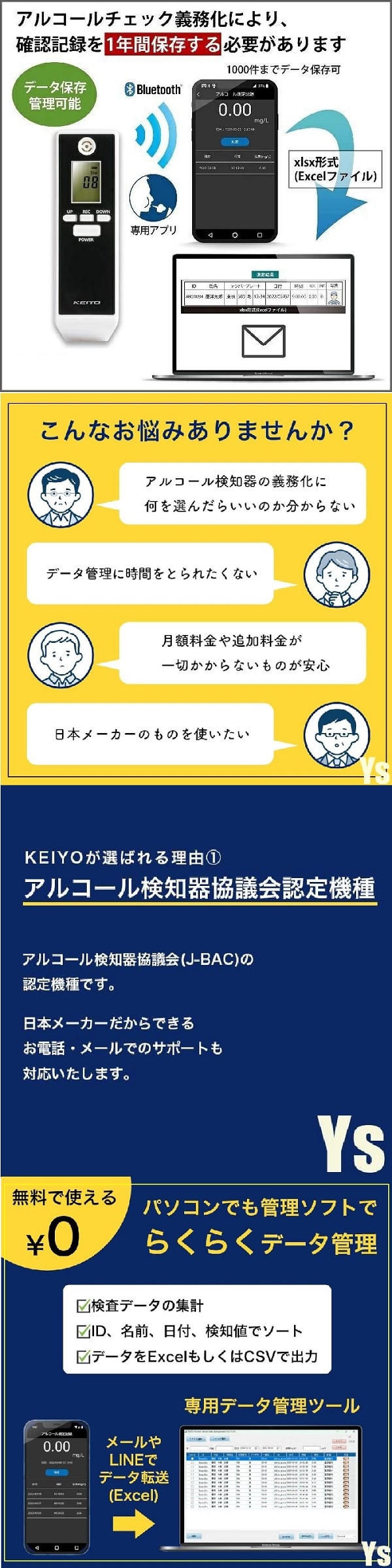 無料スマホアプリにデータ記録 パソコンへデータ転送 顔写真記録機能 電池付属