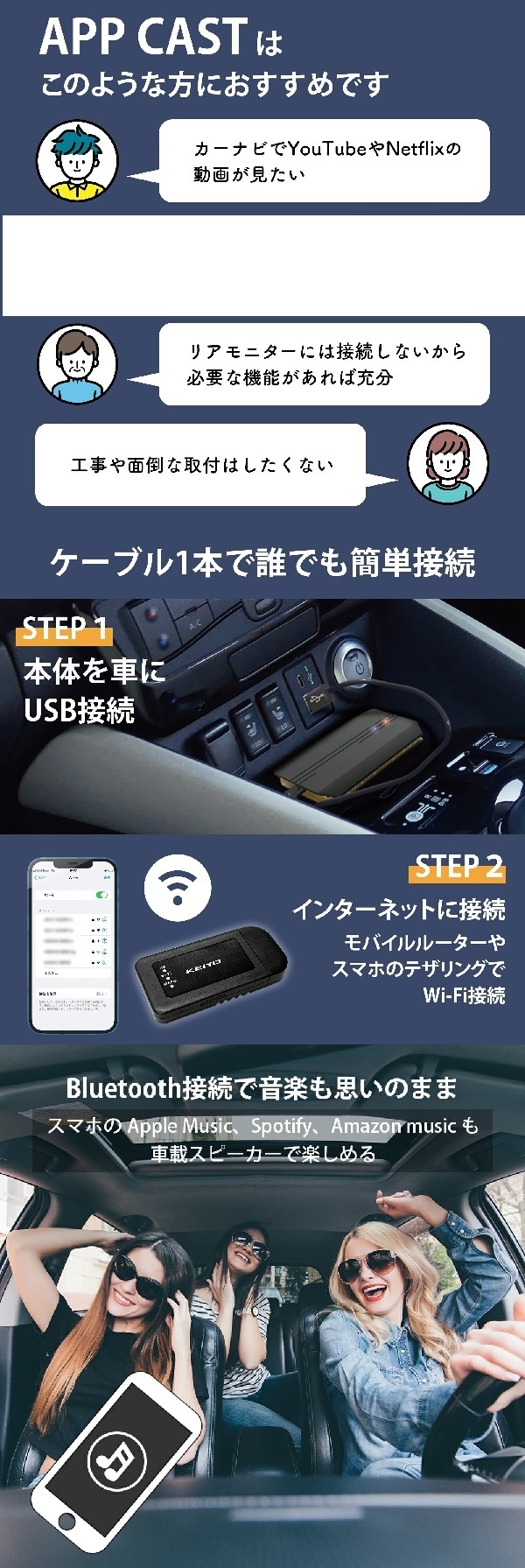 KEIYO APPCAST APPキャスト AN-S109 | 車内でネット動画が見られるCarPlay Ai Box