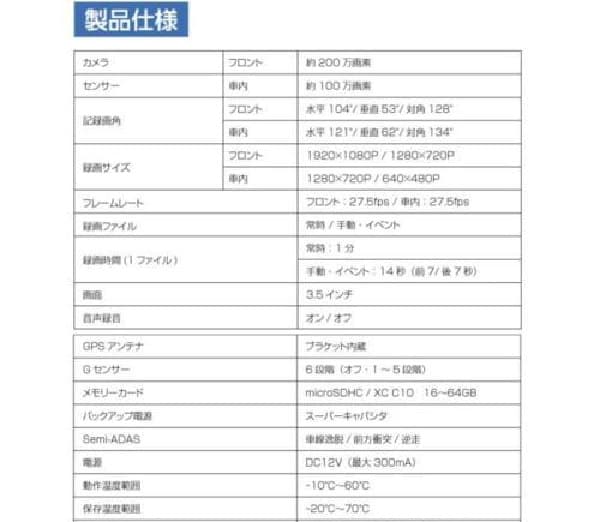 【前方も車内も録画できるドライブレコーダー】前方約200万画素の高画質で信号機やナンバープレートを記録しながら、約100万画素の車内用カメラで室内の記録も同時に行います。ドライブレコーダー1つに2つのカメラ搭載だから、接続ケーブルも少なく、設置も楽になります。