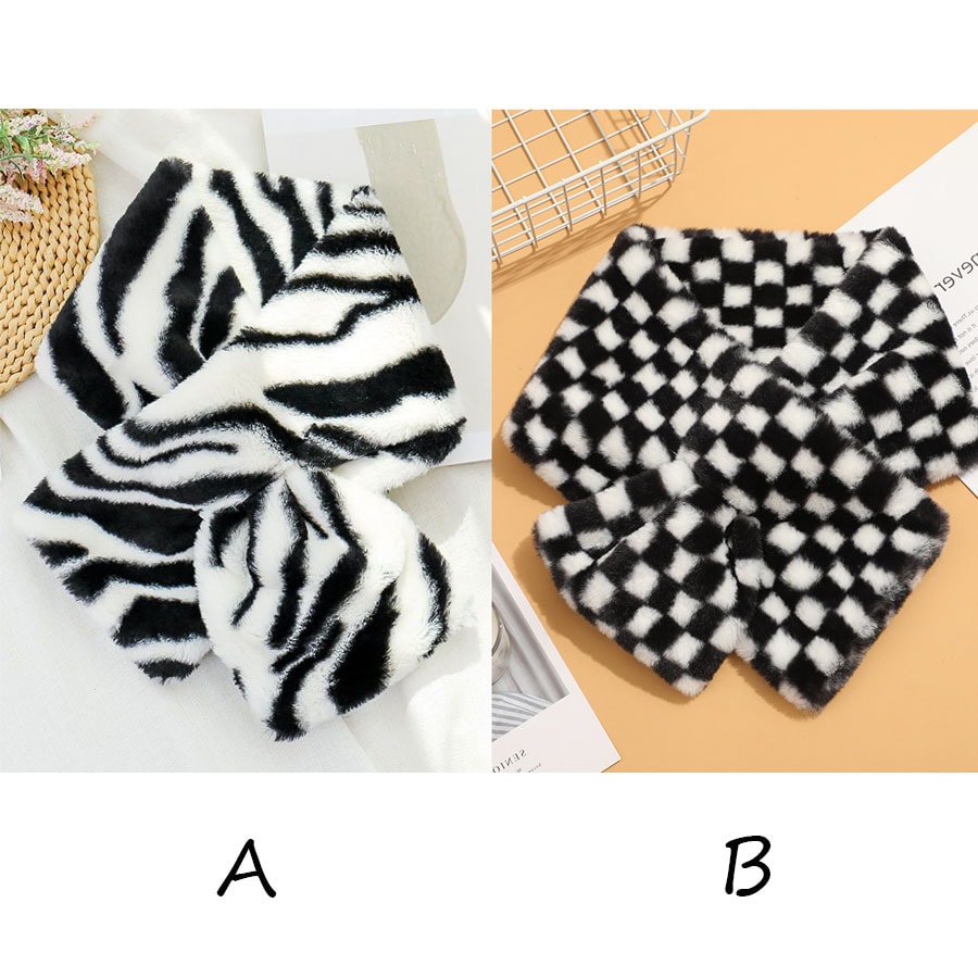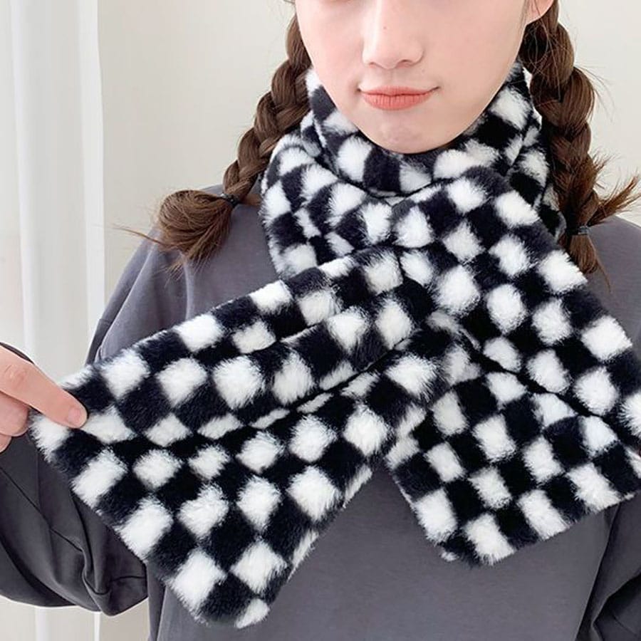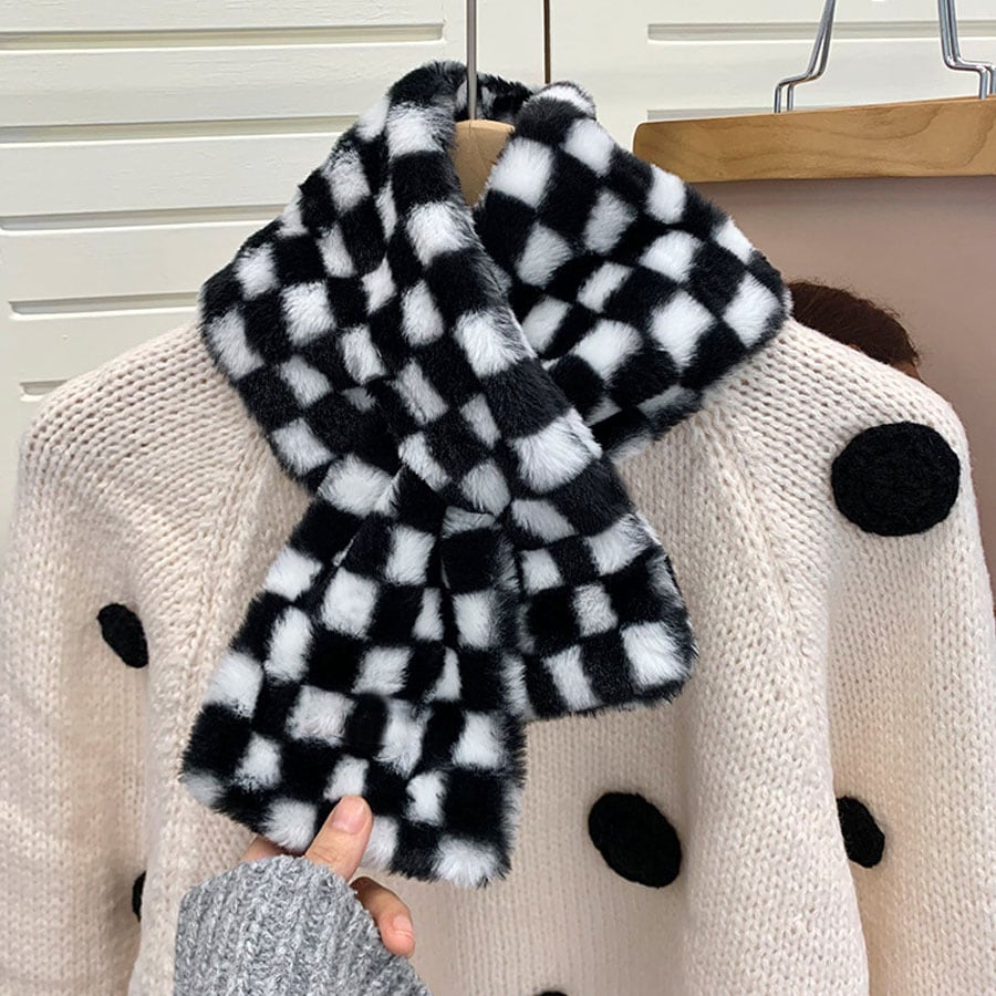 - 【Bチェック柄】ふわふわフェイクファー 差し込みティペット