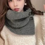 【ベージュ】ボタン付きニットスヌード | 着脱ラクラクボタン付きニットネックウォーマー
