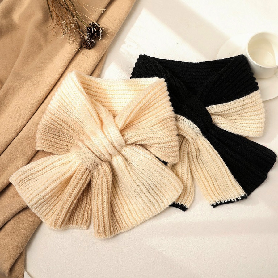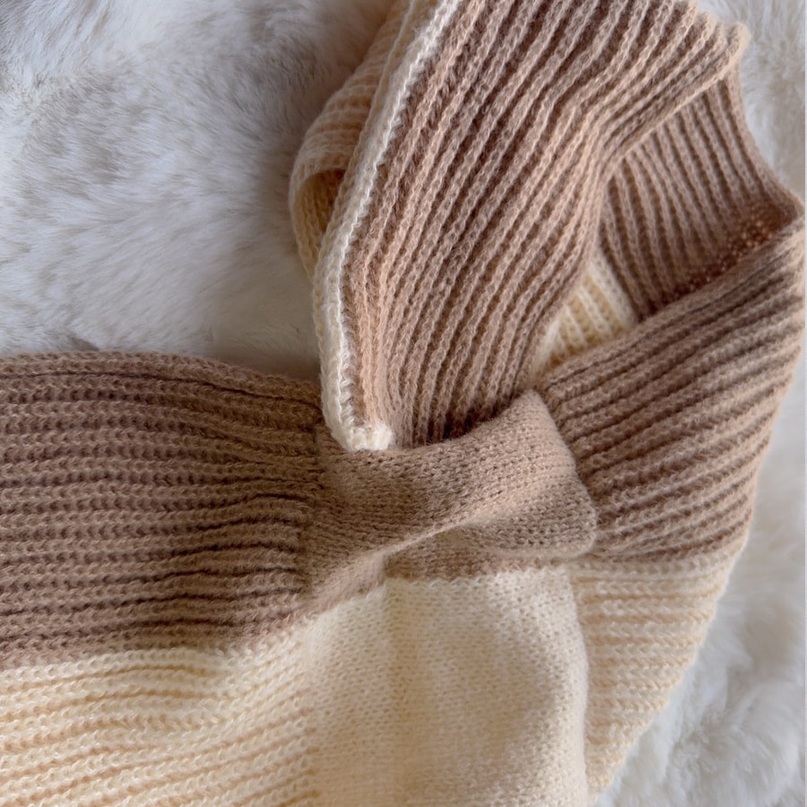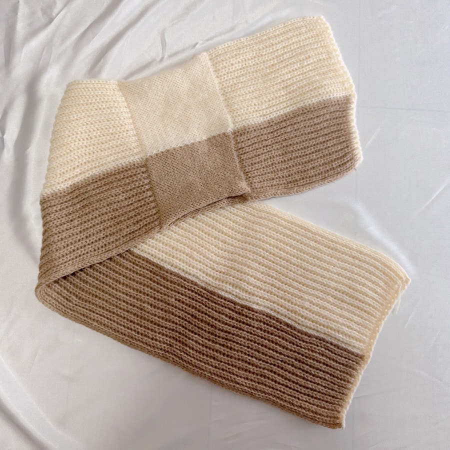 【キャメル】バイカラーマフラー 差し込みタイプ | おしゃれなバイカラーデザインニットマフラー