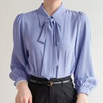 - 【ブルー/Mサイズ】リボン付きシャツラウス
