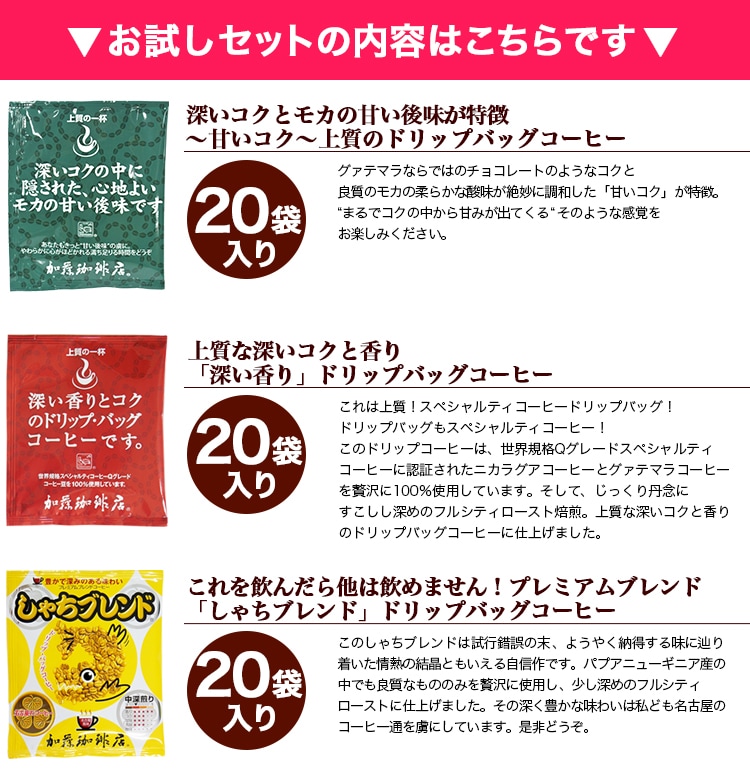 【5種計80袋】[加藤珈琲店]ドリップバッグコーヒー お試し80袋セット | スペシャルティコーヒーを贅沢に使用したドリップバッグコーヒー5種類をお試しください!