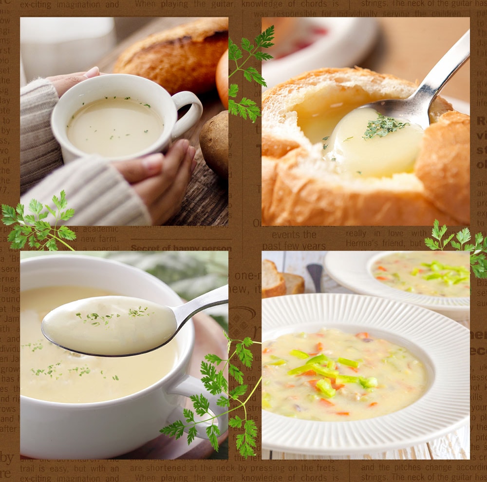 でん粉(国内製造)、食塩、乾燥マッシュポテト、脱脂粉乳、玉葱エキス粉末、砂糖、乳等を主要原料とする食品、乾燥玉葱粉末、鶏エキス粉末、酵母エキス、牛エキス粉末、たん白加水分解物加工品、野菜香味調味料、チーズ粉末、胡椒、ローレル粉末、食用植物油脂、セロリ粉末、うきみ・具(フライドオニオン、乾燥パセリ)/調味料(アミノ酸等)、増粘剤(キサンタンガム)、乳化剤、安定剤(加工デンプン)、香料、カラメル色素、キシロース、V.B1、酸味料、酸化防止剤(V.E)、香辛料抽出物、(一部に小麦・乳成分・牛肉・大豆・鶏肉・豚肉・ゼラチンを含む)
