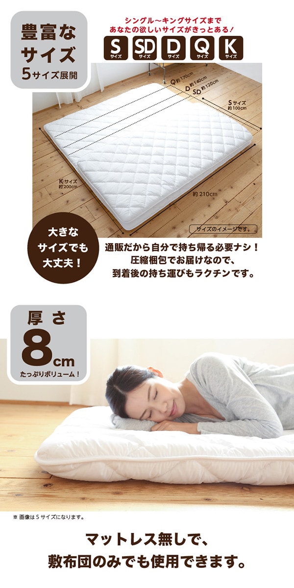 【日替わり数量限定】【ダブル】抗菌防臭 防ダニ 軽量 敷き布団(※日本製/厚さ約8cm) | 敷布団のみでも使用可!巻き綿にテイジンのマイティトップ2を50%使用!防ダニ効果&抗菌防臭