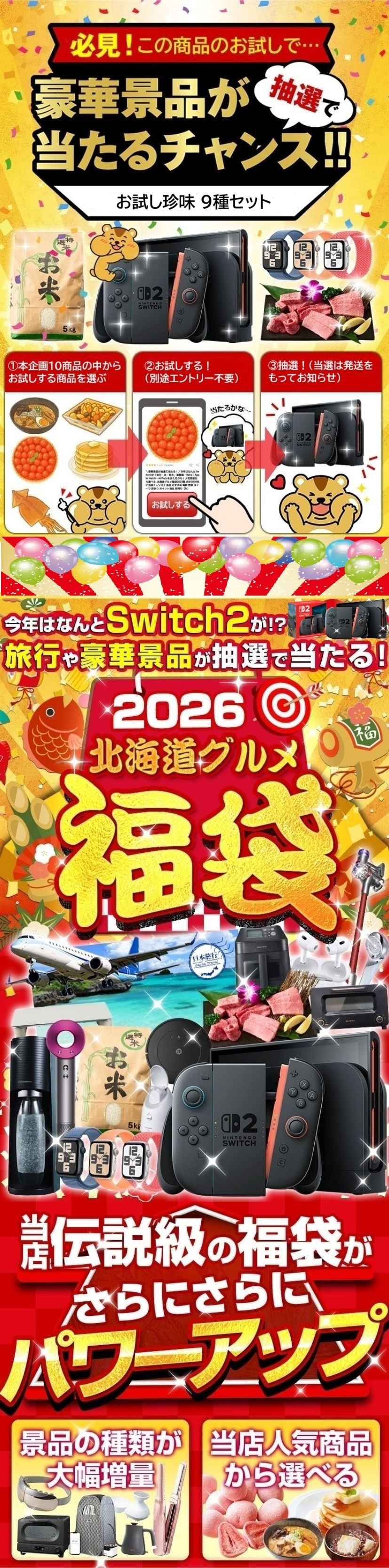 ▼▼豪華景品が抽選で当たる!おトクな北海道グルメ福袋2026抽選商品▼▼